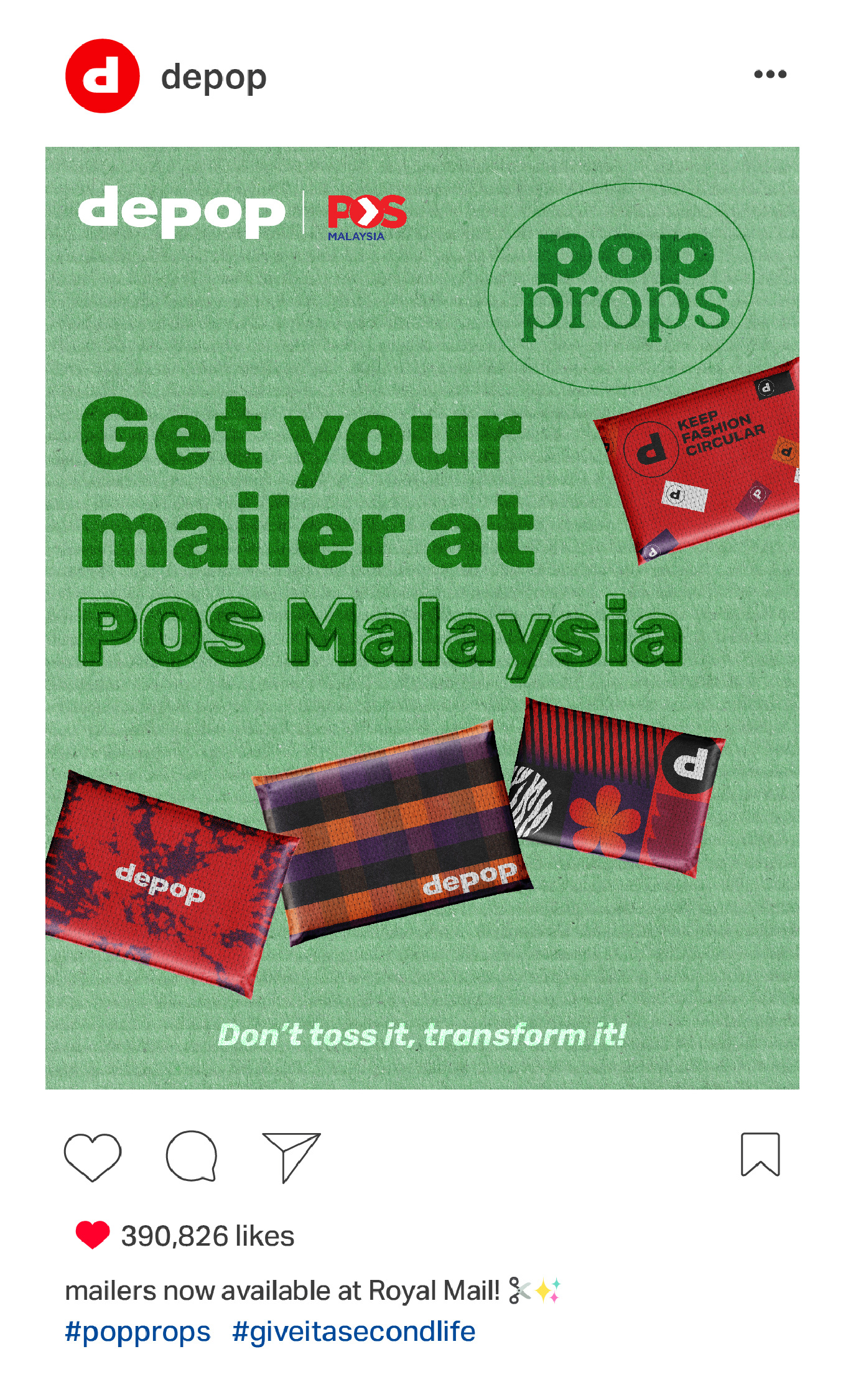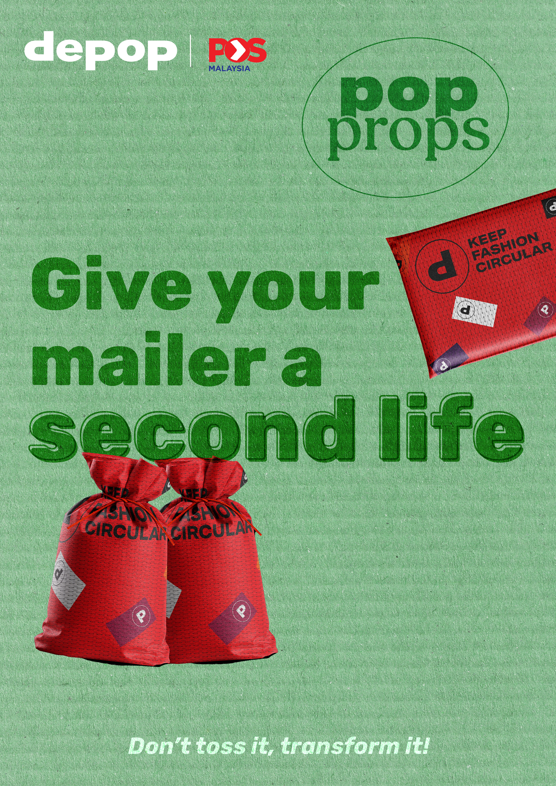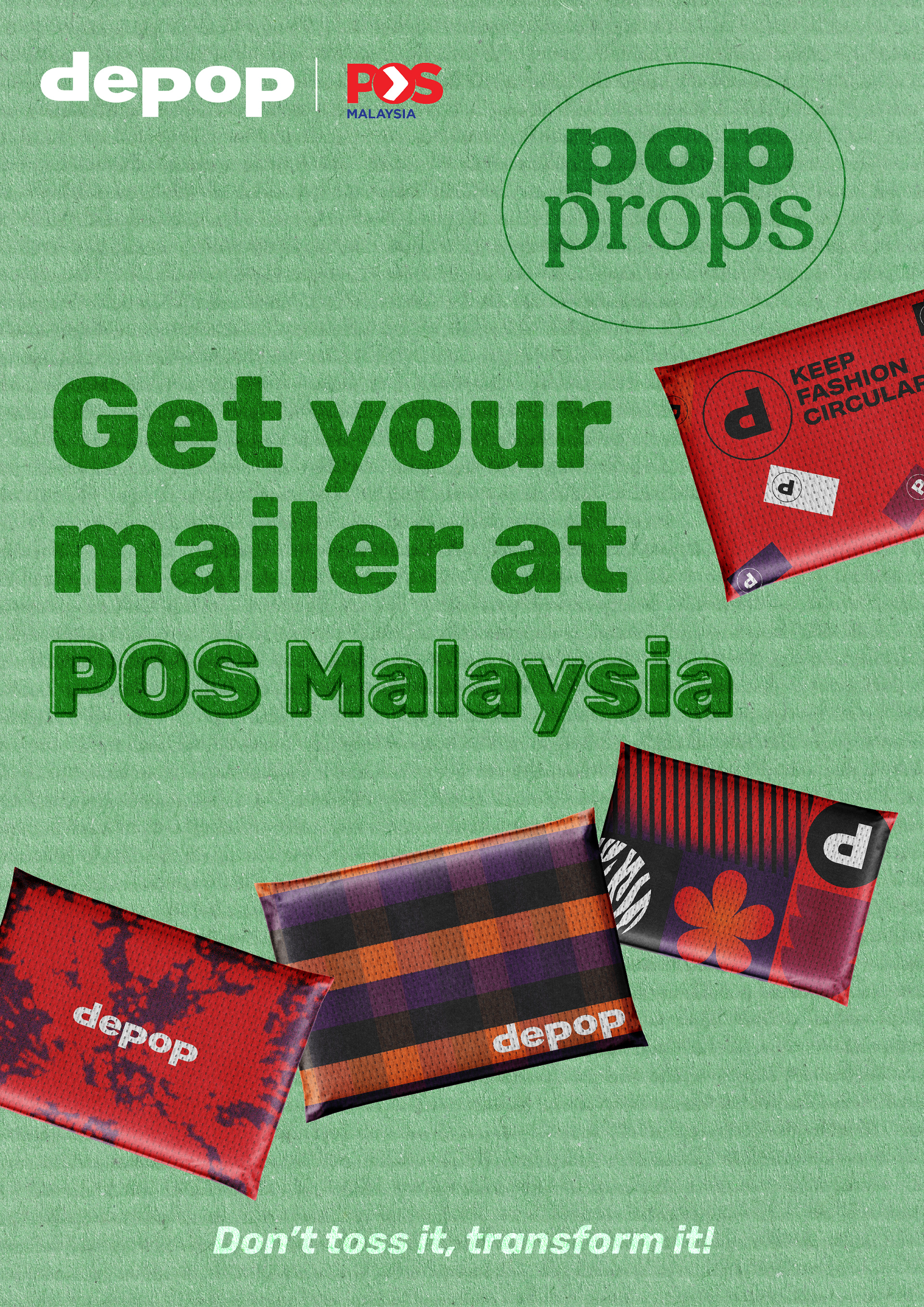 Depop is collaborating with POS Malaysia to make sustainability more creative and accessible. Users can pick up a Depop mailer at any post office to start pop propping!