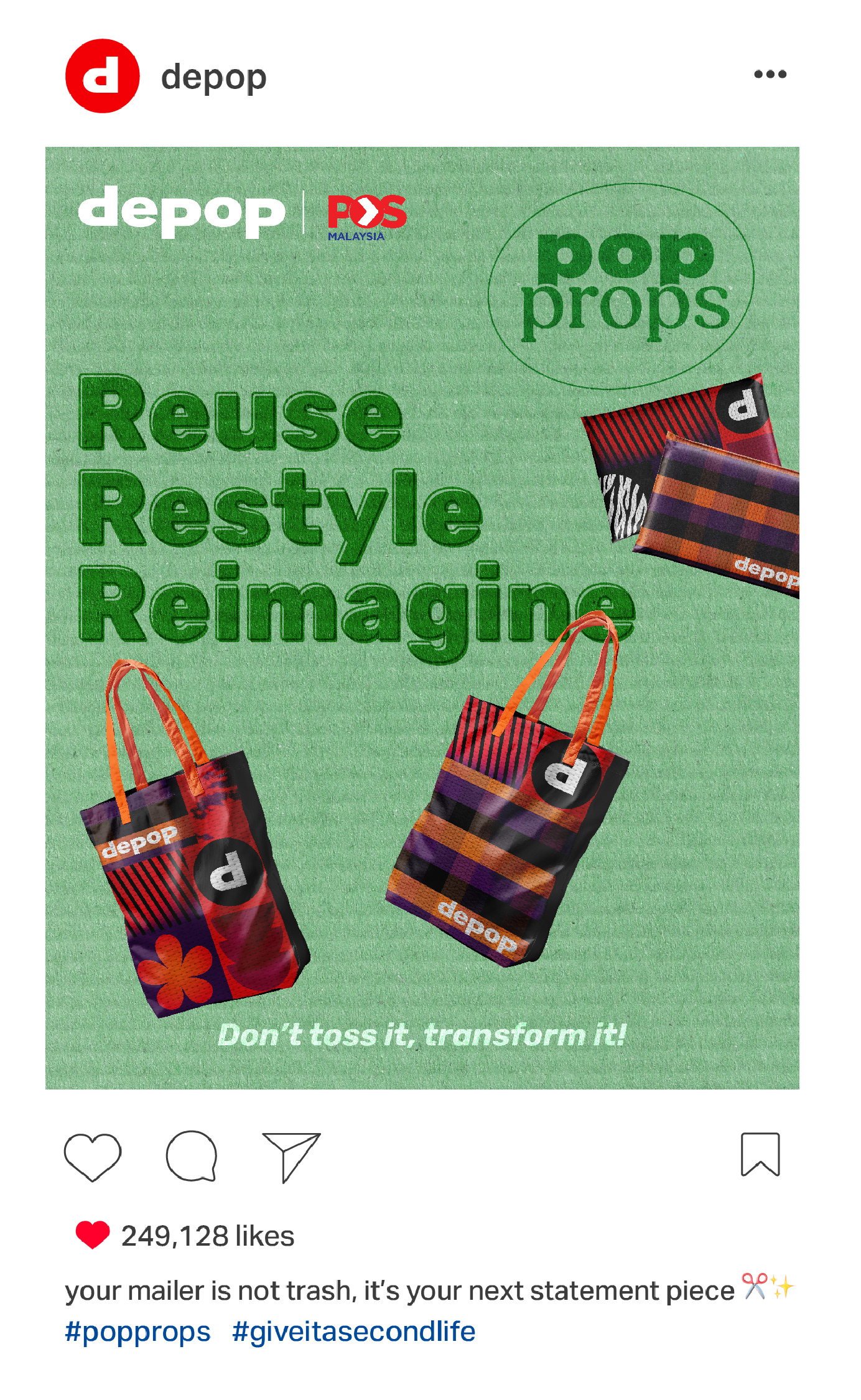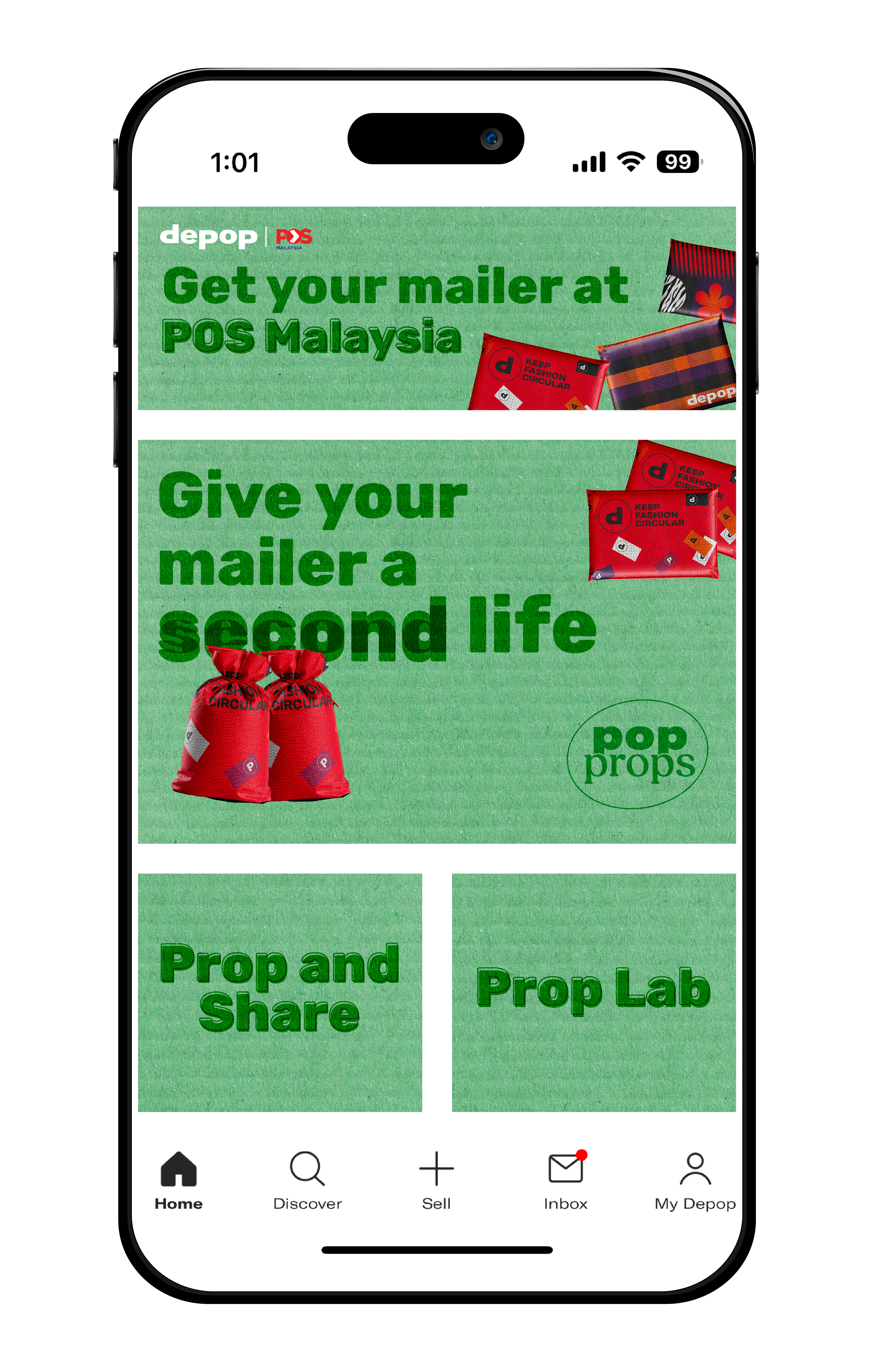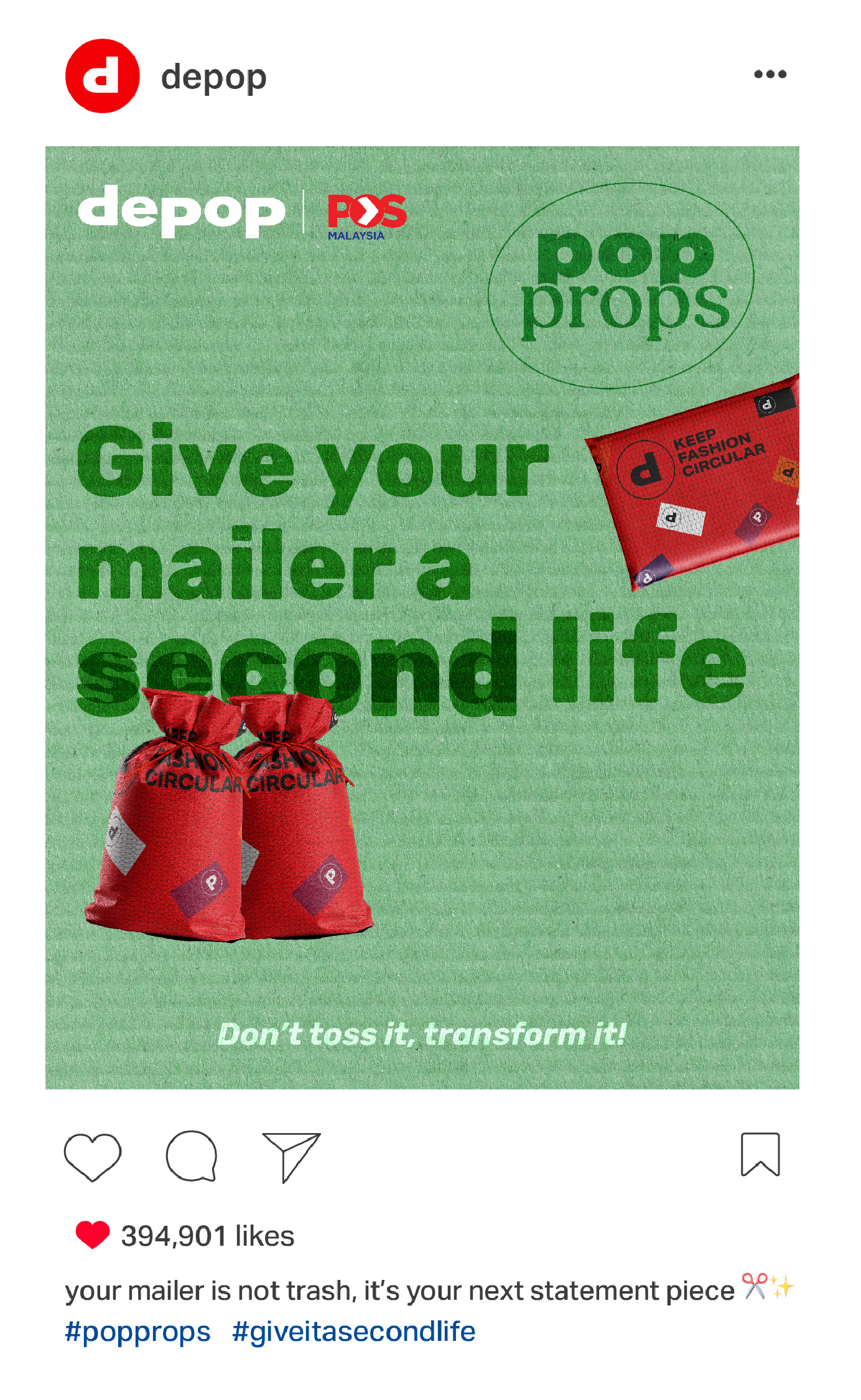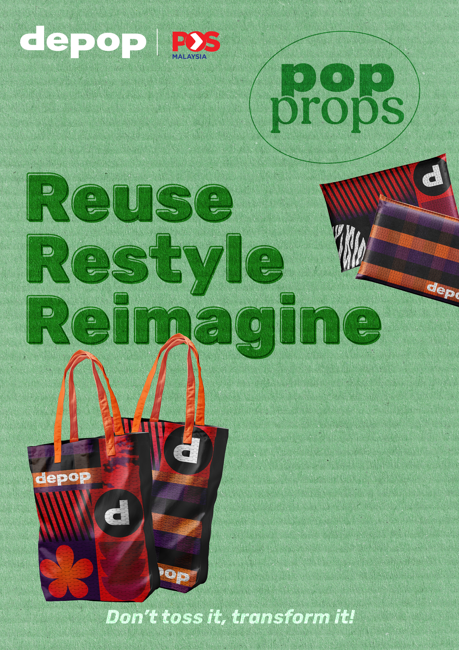 Depop is collaborating with POS Malaysia to make sustainability more creative and accessible. Users can pick up a Depop mailer at any post office to start pop propping!